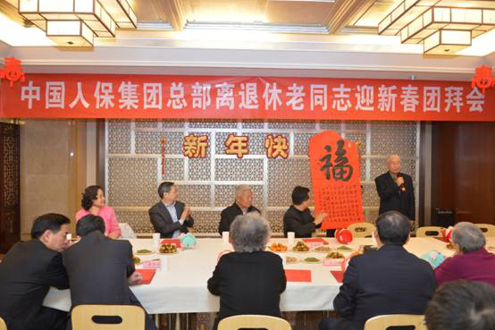 集团公司退休老领导孙希岳代表老同志做了发言,向集团公司领导和员工表示了新春的祝福。参加团拜会的老同志们由衷地为过去一年中国人保集团所取得的成绩感到高兴,为集团党委提出的改革发展新目标而振奋,为公司展现出的新气象新作为而骄傲,并衷心祝愿中国人保集团不断取得新进步、续写新辉煌。