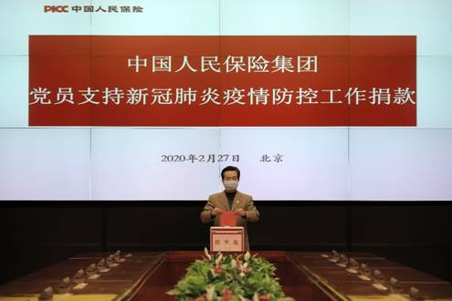 2020年2月27日上午,为积极响应党中央对广大党员的号召,中国人民保险集团公司党委书记、董事长缪建民同志带领集团党委班子成员,带头为支持新冠肺炎疫情防控工作捐款,以实际行动,号召系统广大党员干部积极响应自愿捐款。