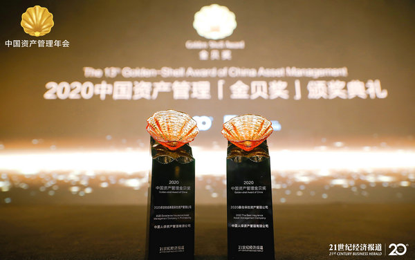 8月9日,由《21世纪经济报道》主办的第十三届中国资产管理年会暨“金贝奖”颁奖典礼在沪举行,人保资产荣获“2020最佳保险资产管理公司”和“2020卓越收益表现保险资产管理公司”两项奖项。