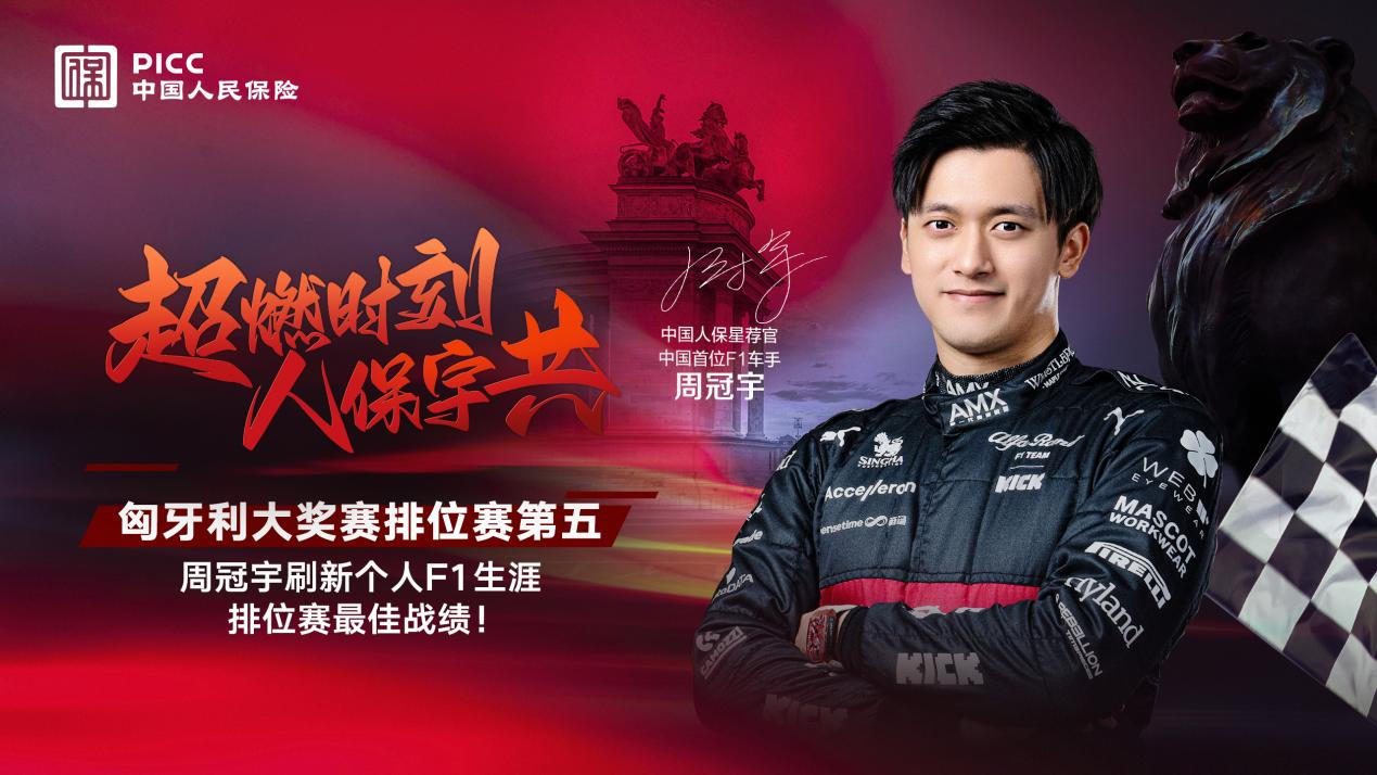 2023年7月22日,F1匈牙利大奖赛排位赛在亨格罗宁赛道落下帷幕。中国人保星荐官、24岁的中国车手周冠宇表现出色,在Q1阶段以1:18.143的成绩力压六冠王维斯塔潘排名第一,并最终获得排位赛第五名,刷新了个人F1生涯排位赛最佳战绩,也创造了中国在F1这项运动中新的历史。