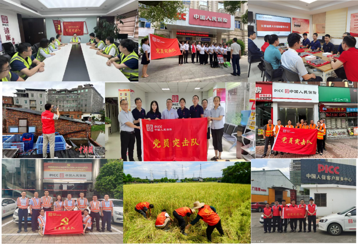 面对灾情,各级基层党组织和广大党员干部主动亮身份、扛重担、当先锋、做表率,通过组建大灾理赔党员突击队、理赔党员先锋工作小组等,切实承担起抢险救灾重要任务,以坚定信心投入到防汛救灾工作中。截至8月7日,人保财险已调集业务骨干成立三支理赔工作指导组分赴华南、华北、东北受灾最严重的一线地区,现场组织开展大灾理赔工作;已累计派出150名理赔专家团队赶赴重灾区开展理赔救援工作;已累计组建近200个党员志愿者突击队、派出近2000名党员同志参与到此次抢险救灾工作中。