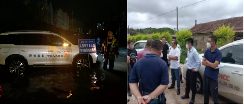 在吉林, 8月3日,吉林省松原市、吉林市遭遇强降雨,人保财险吉林省分公司迅速启动应急预案,快速组成夜间理赔防汛救灾党员突击队,大灾面前不退缩,勇当救灾排头兵,第一时间到达指定易积水低洼路段,配合交警部门设置安全警示牌,提醒过往车辆积水路段请勿通行;8月6日,人保财险吉林市分公司组成5个非车险理赔先锋工作组前往灾区查勘家财险。