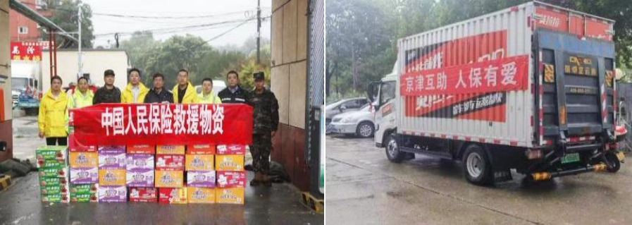 “一方有难,八方支援”,在全力以赴发挥保险职能、积极投入防汛救灾的同时,人保集团各级机构自发组织开展公益捐赠和物资捐赠。人保财险向应急救援人员捐赠团意险总保费327.88万元;所辖山东、天津、北京分公司在收到北京部分地区受灾消息后,迅速调度组织党员先锋支援队,连夜筹备矿泉水、面包、火腿肠、方便面等多车物资,克服暴雨继续、道路中断等困难,以“无畏”精神争分夺秒赶路,于8月1日陆续将防汛救援物资送抵北京受灾严重地区,成为行业内首家组织救援物资支援灾区的先锋队。