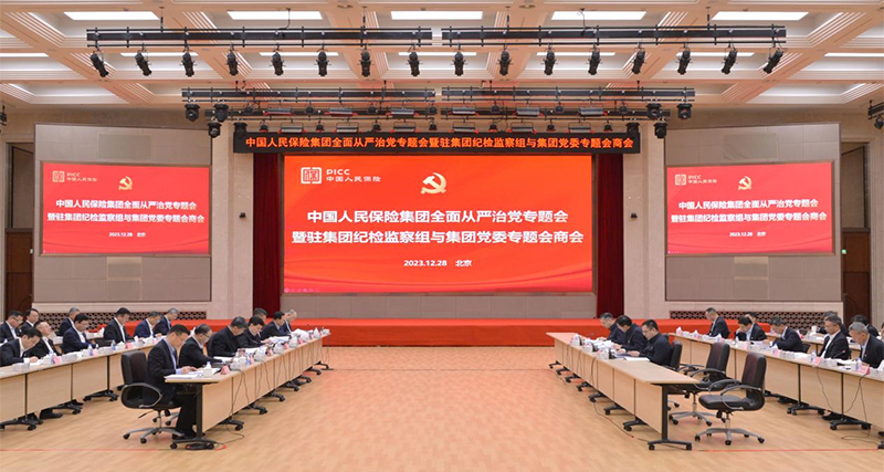 12月28日上午,中国人保集团召开2023年集团全面从严治党专题会暨驻集团纪检监察组与集团党委专题会商会,进一步深化对党中央重大决策部署的认识,对标对表中央部署要求,进一步查找全面从严治党差距,进一步突出问题导向和目标导向,抓深抓实中央金融工作会议精神落实、中央巡视整改和全面从严治党工作。中央纪委国家监委第三监督检查室、中央主题教育第19巡回指导组、中央金融工委指导督查局有关同志列席指导。集团党委书记、董事长、集团党的建设工作领导小组组长王廷科出席会议并讲话。集团党委副书记、总裁、集团党的建设工作领导小组副组长赵鹏主持会议。中央纪委国家监委驻中国人保纪检监察组组长石青峰同志参加会议并向集团党委提出监督建议。集团党委班子成员参加会议。