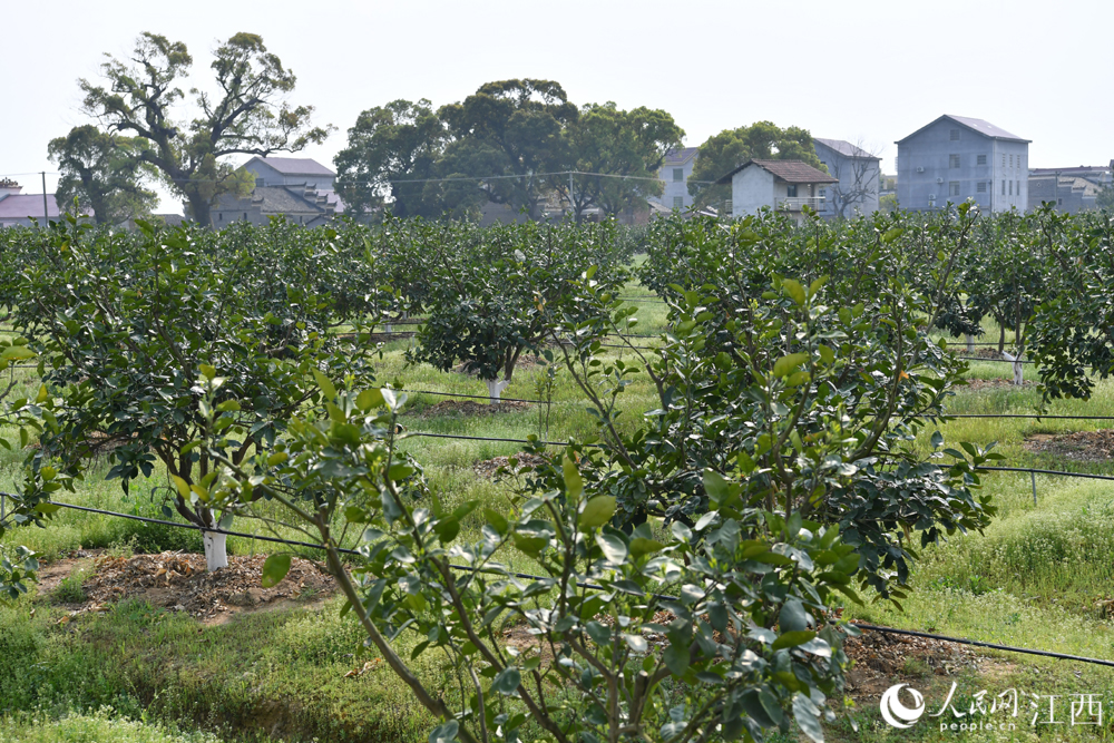 吉安县永阳镇江南村村民在房前屋后种植的蜜柚树。(人民网 时雨摄)
