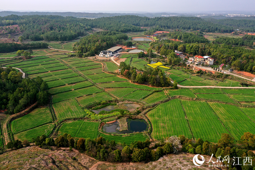 吉安县梅塘镇河源村600余亩食用艾草基地绿意盎然。(人民网 时雨摄)