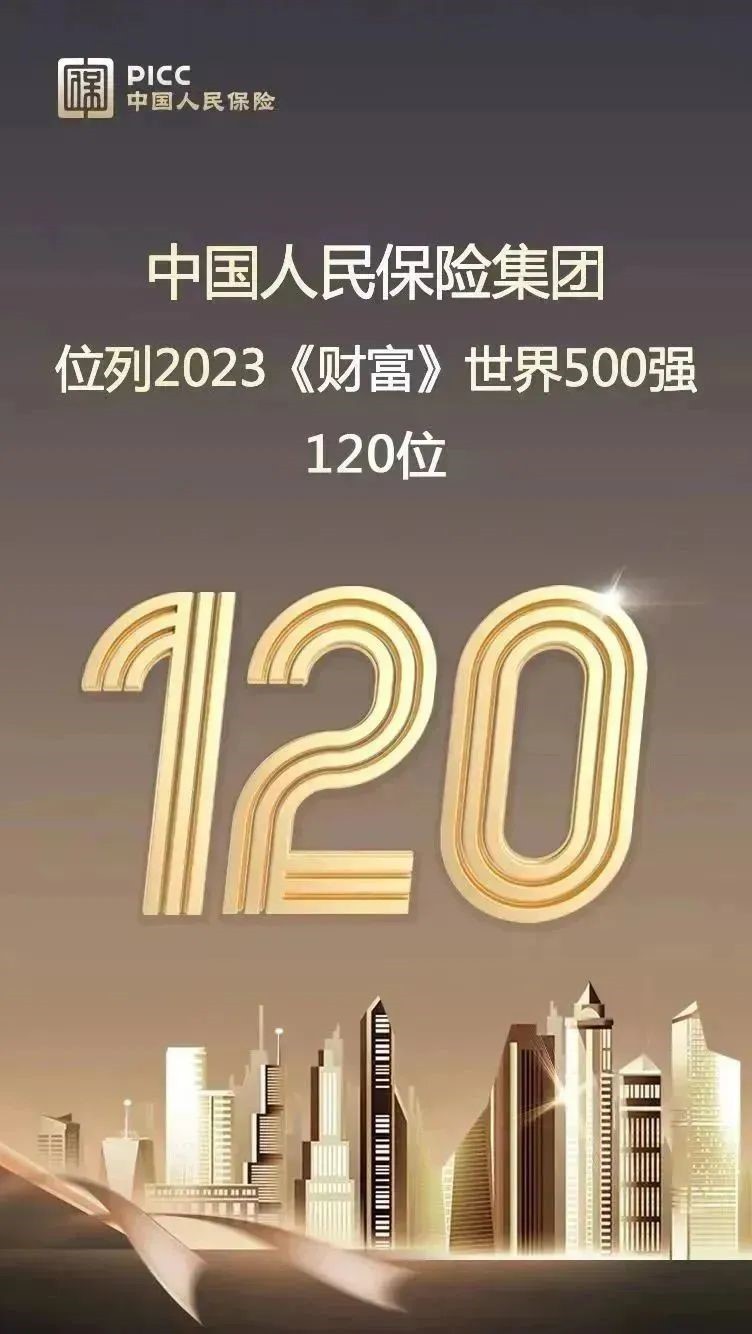 2023年8月2日,《财富》世界500强排行榜正式发布,中国人民保险集团位列第120位,连续13年上榜。今年《财富》世界500强排行榜企业的营业收入总和比上年上涨8.4%,但所有上榜公司的净利润总和同比减少6.5%。全球共有49家保险业相关公司上榜,比去年减少8家,多数保险企业的排名下降。
