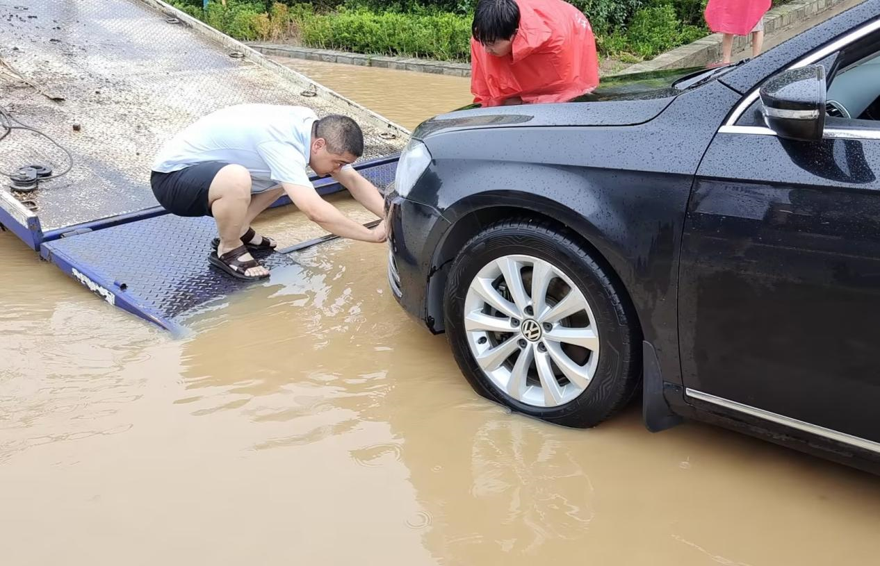 7月30日,人保财险河北分公司查勘员协助客户车辆施救,为车辆安装托引钩。