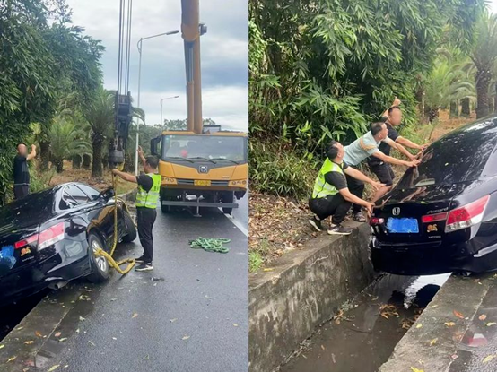 7月28日上午,人保财险福建漳州市分公司组织多个巡查小组上街开展路面巡查。巡查员行车至324国道某路段时,发现路边一辆家用车右边轮胎滑入排水渠,车主在路边焦急等待救援。经询问,车主不是公司客户,因路面积水,轮胎打滑失控滑入沟中,不知如何是好。该分公司巡查员一边安抚车主,一边联系救援合作单位安排施救车辆,将受灾车辆从沟中吊起,并协助车主做好现场拍照留存和后续理赔事宜。车主握着巡查人员的手夸奖道:“要紧时刻,还是人保靠谱!”