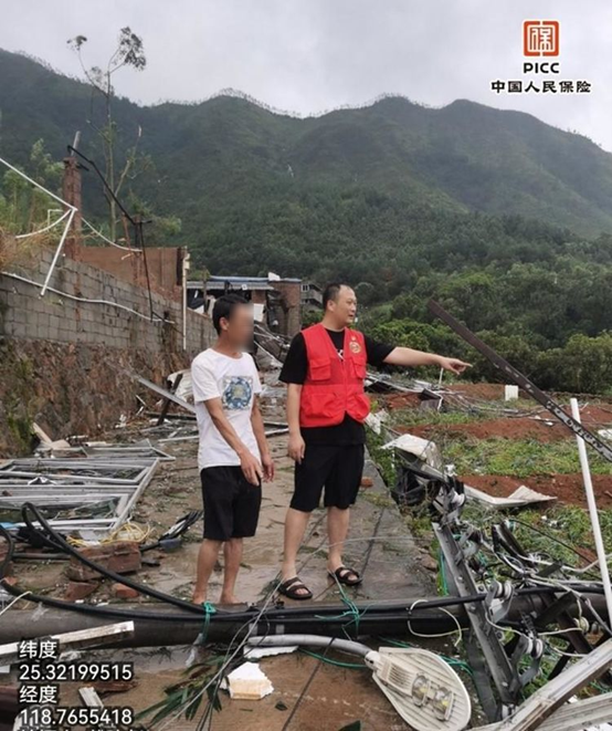 7月28日,人保财险福建莆田仙游支公司农险协赔员先后接到了两个电话:一边是妻子告诉他家里的自建房屋顶被台风吹倒,瓦片碎裂一地;另一边是某养殖场报案,告知猪圈屋顶倒塌造成许多生猪死伤,急需查勘救援。他电话嘱咐妻子安顿好家里老人和孩子后,毫不犹豫赶赴位于山里的养殖场,第一时间和养殖场工人一起排查现场受损标的。