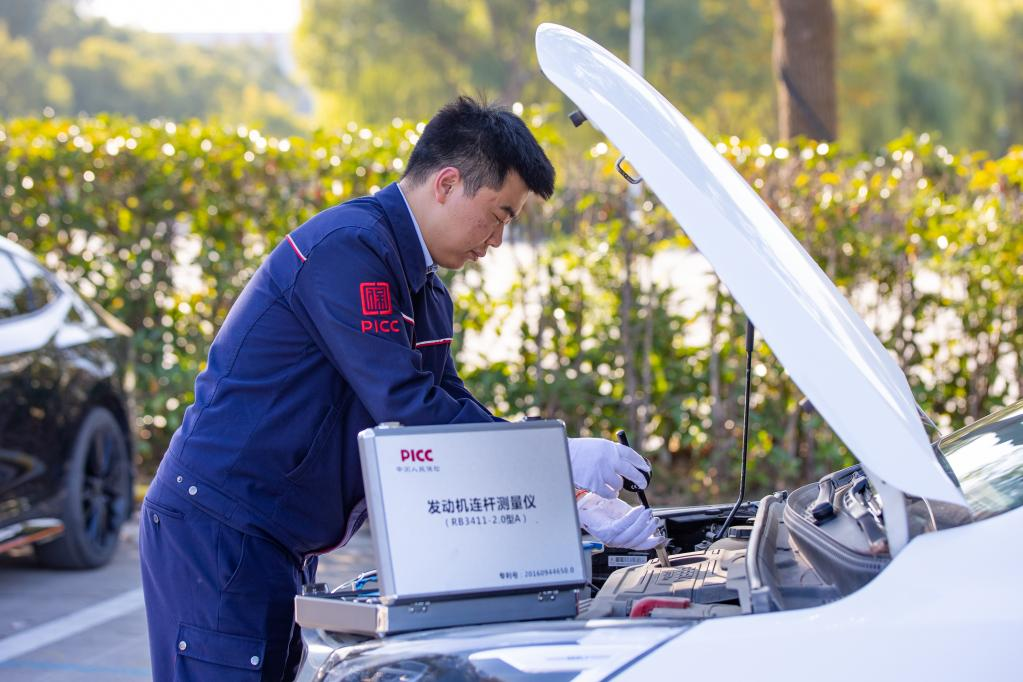 图3:为人保财险浙江嘉兴市分公司工作人员正在为客户车辆排除故障,