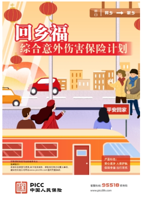 2023年,围绕新市民群体,人保寿险稳步创新保险产品、拓宽保障服务路径,推动普惠金融惠及更多群众。为更好地为新市民群体提供保险保障服务,充分发挥好保险扶危济困的独有优势,人保寿险近期针对春节返乡人群开发了一款极短期个人意外险产品组合——“回乡福”综合意外伤害保险计划,为春节返乡高峰期间的新市民群体的出行保驾护航。