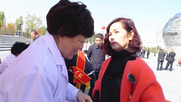 中国女医师协会全科分会委员王丛妙在为群众义诊