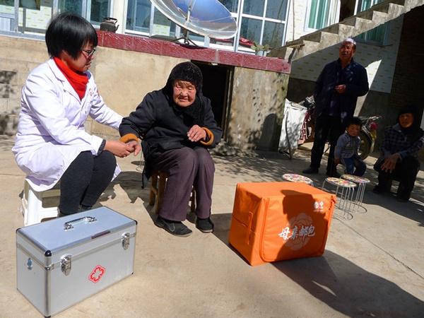 “母亲健康快车”为吹麻滩镇后阳洼村90多岁的老人送去“母亲邮包”