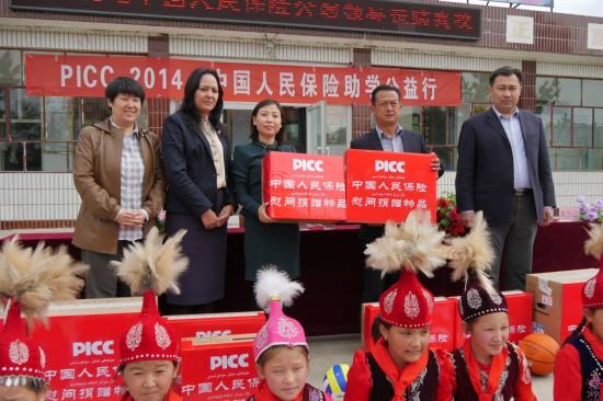 9月24日,“2014·中国人民保险助学公益行”活动在新疆昌吉州木垒哈萨克自治县白杨河中心学校、英格堡中心学校举行。中国人保公益慈善基金会有关负责同志、人保集团在疆机构代表向两所学校捐赠了电脑、投影仪、运动服、体育器材等助学用品。木垒县政府等有关领导及两所学校近300名师生参加了活动。