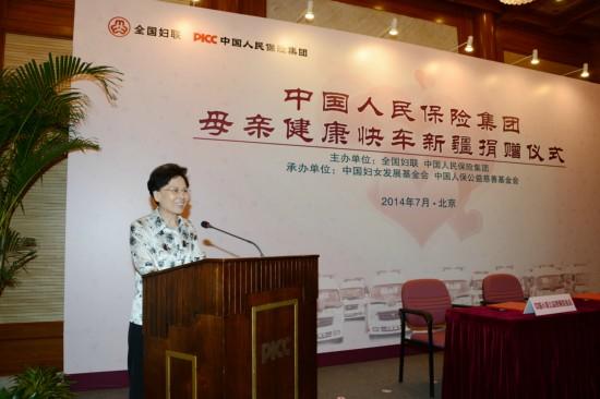 会上,中国妇女发展基金会理事长黄晴宜表示,母婴健康关系到家庭的幸福,民族的兴旺,中国人民保险集团捐赠新疆的“母亲健康快车”,是惠及新疆妇女儿童的一项民生工程,是增进民族感情、促进民族团结的具体行动,是贯彻落实习总书记讲话精神的实际举措。中国妇女发展基金会将会以最快的速度组织车辆生产和运送,将中国人民保险集团对新疆的关爱送到各族妇女身边。
