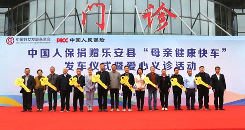 10月22日,中国人保捐赠江西省乐安县“母亲健康快车”发车仪式暨爱心义诊活动在乐安县人民医院广场举行。中国人保公益慈善基金会理事长谢一群、中国妇女发展基金会副理事长兼秘书长董葵等领导出席活动。